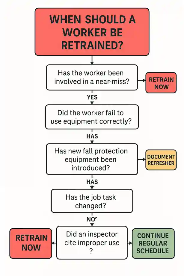 | 5. Competency Evaluation | Trainer tests workers via observation, quizzes, or performance checklists. | Workers must show they understand and can safely perform fall protection tasks before being approved. | Ensures every worker is qualified before stepping foot on a roof, structure, or elevated area. |