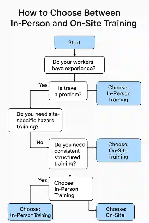 | Companies with multiple job sites | ✔ Yes | ✔ Yes | In-person provides consistent training; on-site offers site-specific hazard coverage. |